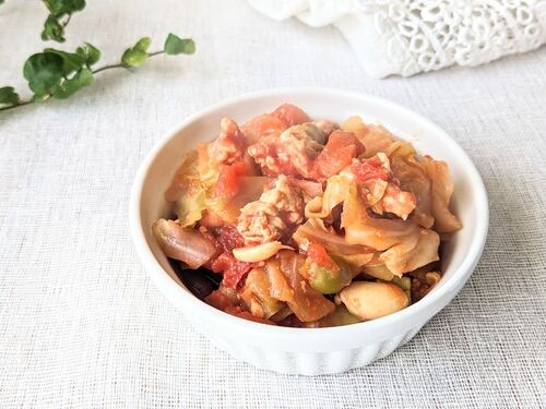 【春キャベツと鶏ひき肉と豆のトマト煮】レシピをご紹介です。 美肌レシピのポイントは、 ◆トマト缶でリコピンを補給 ◆鶏肉で良質なたんぱく質をちょい足し ◆キャベツ、豆で食物繊維を補う がポイントです。