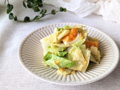 【春キャベツとゆで卵のカレーチーズサラダ】をご紹介です。 美肌=健康なBODY。栄養バランスを整えて、新陳代謝&血行をよくすることが大切です。 レシピのポイントは、 ◆キャベツでコラーゲンの生成に関わるビタミンCを補給 ◆卵で良質なたんぱく質を補給…