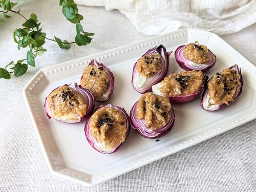 【グリル玉ねぎの胡麻味噌のせ】をご紹介です。 レシピのポイントは、 ◆玉ねぎで腸内細菌のエサとなるオリゴ糖や抗酸化物質・イオウ化合物を補給 ◆胡麻で不足しやすいカルシウムや食物繊維、抗酸化物質を補給 ◆発酵食品・味噌で腸活 です。