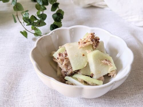 【コールラビとツナのハニーマスタード】をご紹介です。 レシピのポイントは、 ◆コールラビで美肌にマストなビタミンC補給 ◆ツナ水煮缶で良質なたんぱく質を補給 ◆マスタードで抗酸化作用をプラス です。