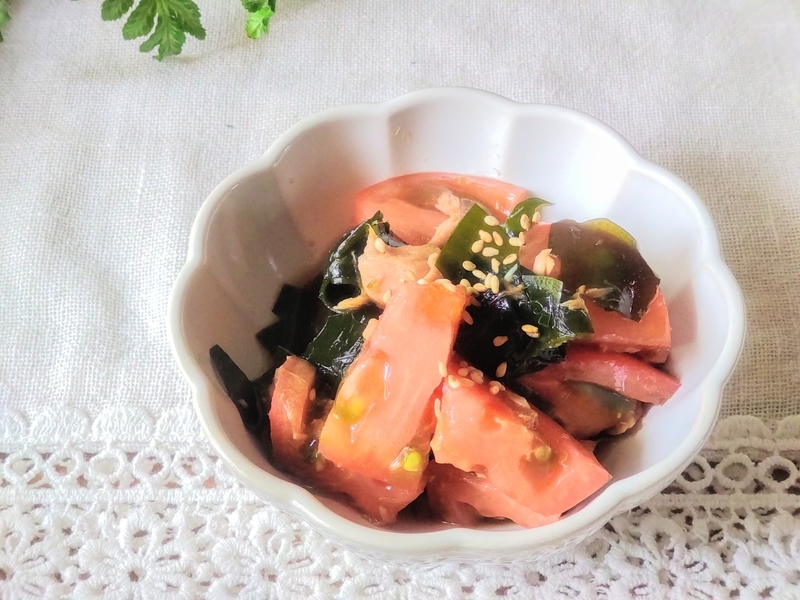 今回は愛媛県産のトマトを使った『トマトとわかめとツナの黒酢和え』のレシピです。