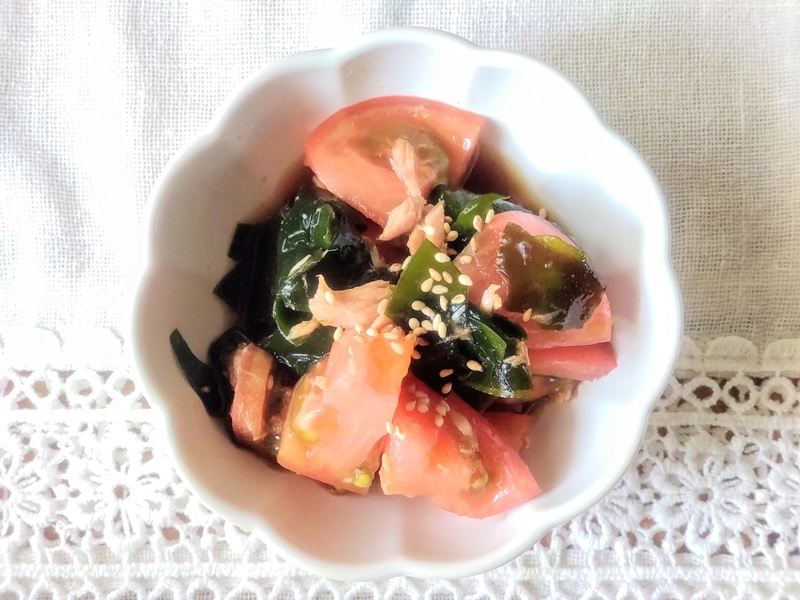 『トマトとわかめとツナの黒酢和え』のレシピ
