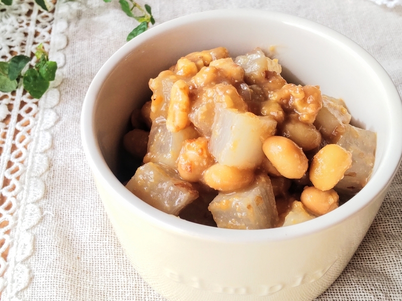『蒸し大根と大豆の胡桃味噌和え』のレシピ