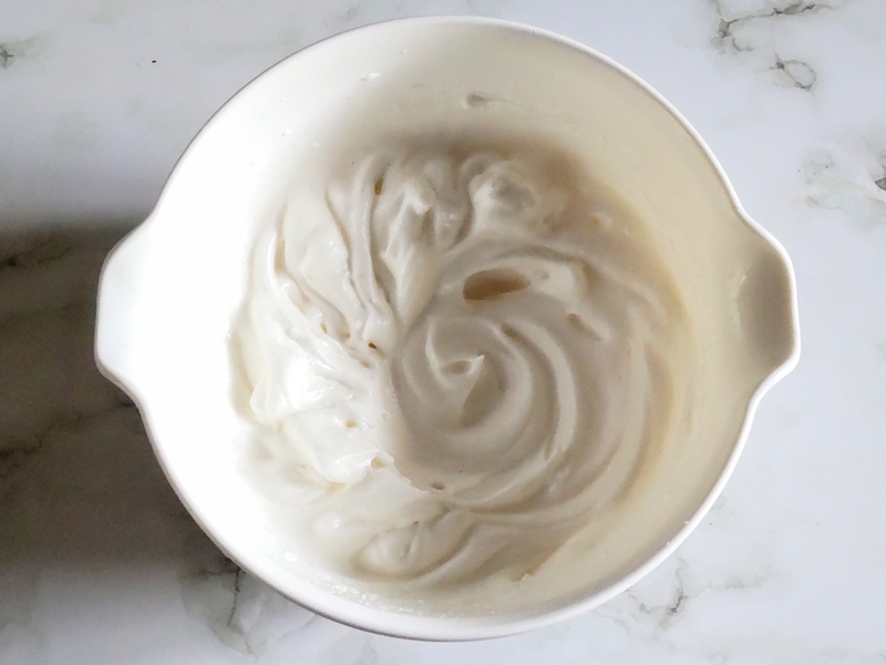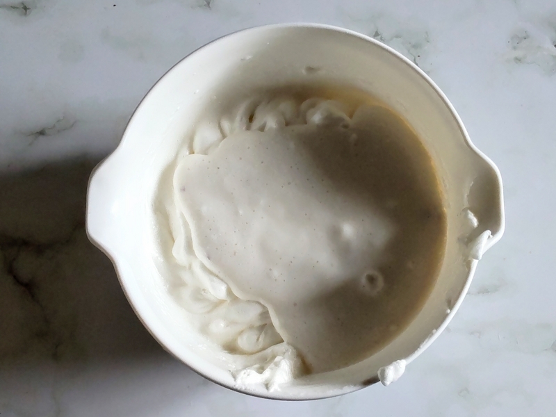 メレンゲの1/3をヨーグルトに入れて混ぜ、残りのメレンゲに戻してさっくり切るように混ぜる。