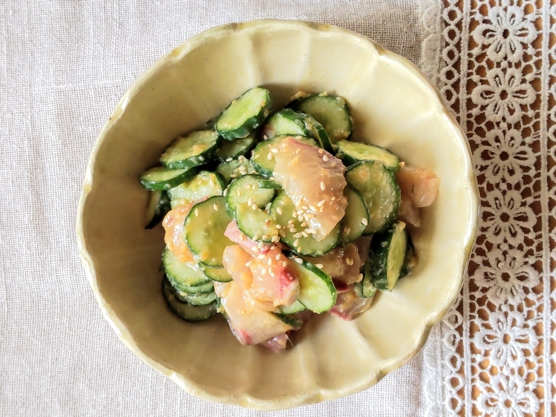 きゅうりをいっぱい買ったので(野菜はいつも買いすぎる)、きゅうりとお刺身を掛け算したいな~と。